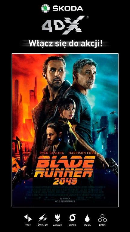 Premiera odbędzie się 6 października, a Cinema City zaprasza już w czwartek 5 października na pokazy przedpremierowe! Jeśli chcesz totalnie zanurzyć się w odjechanej rzeczywistości 2049 roku, przyjdź i obejrzyj film na gigantycznym ekranie w formacie IMAX, na którym zobaczysz o 26% więcej niż w innym kinie! Natomiast ci, którzy potrzebują naprawdę ekstremalnych wrażeń, będą zachwyceni seansem w oddziałującej na wszystkie zmysły technologii 4DX, która wciągnie ich w sam środek akcji. Bilety są dostępne w kasach kin oraz na stronie www.cinema-city.pl