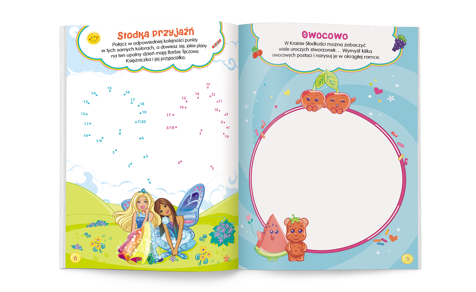Mądre wróżki, niezwykłe stworzenia. Magiczne krainy… Czy to sen? Razem z Barbie i Chelsea odkrywaj bajeczny świat marzeń. Projektuj, łącz kropki, zagraj w kółko i krzyżyk.