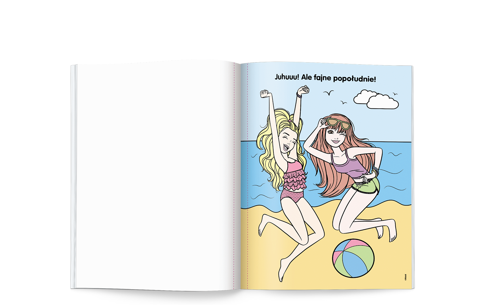 Zabarwione strony maluch pociąga pędzelkiem zamoczonym w wodzie i otrzymuje piękne, barwne ilustracje. Prosta formuła sprawia, że dziecko za każdym razem może liczyć na pozytywne rezultaty, a to stanowi dla niego znakomitą motywację. Dodatkowym atutem jest ulubiona Barbie i jej przyjaciółki.