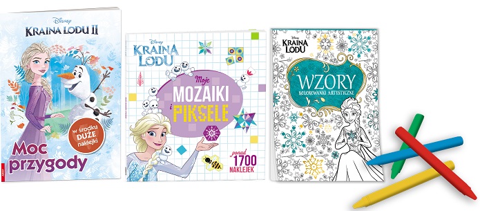 • książka z ciekawymi zadaniami, łamigłówkami i dużymi naklejkami