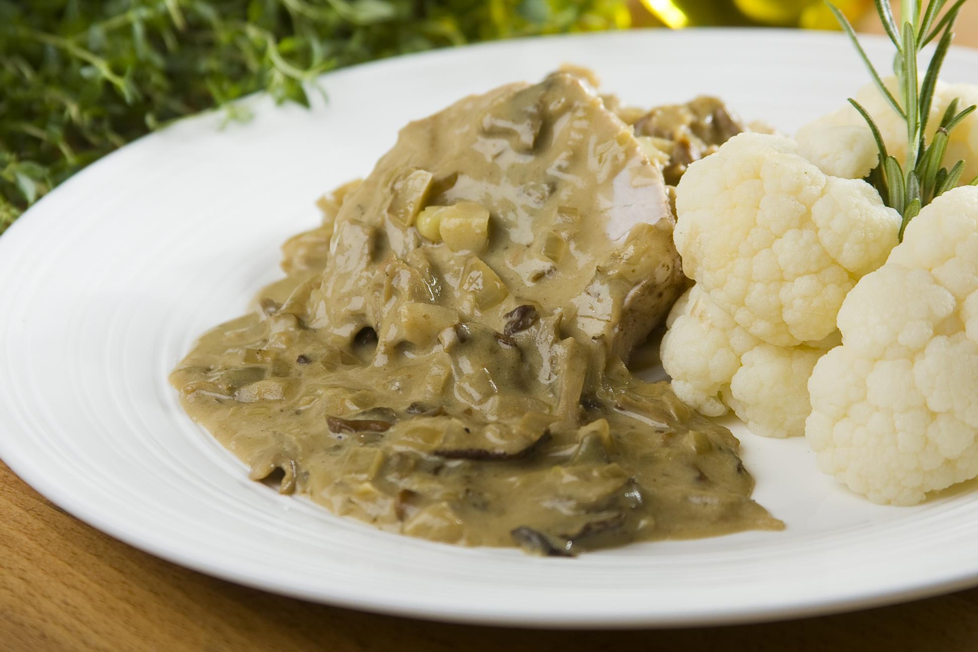 Na rozgrzanym maśle lub margarynie zeszklij cebulę, dodaj czosnek oraz grzyby. Oprósz wszystko mąką, wymieszaj i chwilę podgrzewaj. Następnie wlej białe wino. Całość gotuj do momentu, gdy zmniejszy swą objętość do minimum.