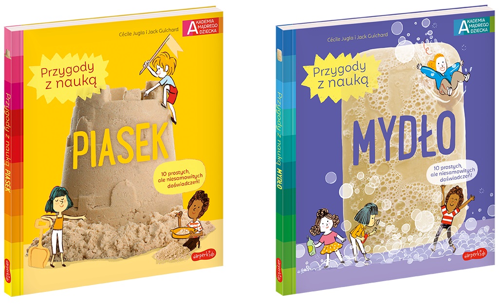 Dzieci kochają kąpiele, a czy wiesz, że pluskanie w wodzie i zabawę z mydłem można wykorzystać do nauki? Inspiracje znajdziecie w książce „Mydło” kolejnej części serii „Przygody z nauką”, która zachęca do prostych eksperymentów i pomaga w nauce w przyjazny sposób. Robiąc pianę, czy rozpuszczając mydło dzieci same odkrywają podstawowe prawa nauki i dowiadują się pożytecznych rzeczy: dlaczego bańki unoszą się w powietrzu; czym jest piana i jak zrobić mydło w żelu.