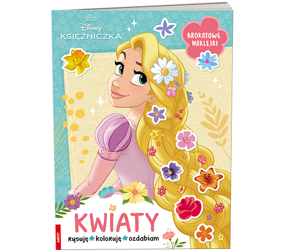 Poznaj piękny i kolorowy świat kwiatów! W książce znajdziesz proste sposoby na ich rysowanie, a także mnóstwo brokatowych naklejek, którymi możesz ozdabiać fryzury i stroje księżniczek. Róże, irysy, fiołki, lilie – sięgnij po kredki i mazaki, by nadać barwy tym uroczym kwiatom!