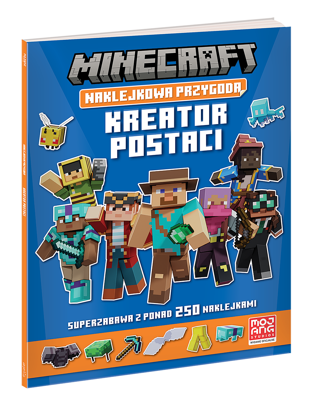 „Minecraft. Naklejkowa przygoda. Kreator postaci” to kolejny tom w serii jedynych na rynku oficjalnych albumów z naklejkami stworzonych we współpracy ze studiem Mojang!