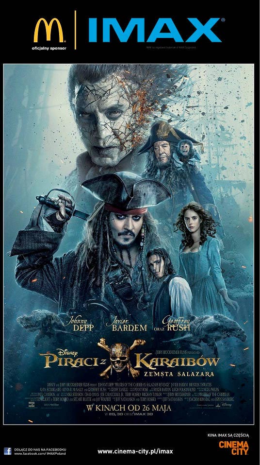 Wybierz seans w najwyższej jakości dźwięku i obrazu w kinie IMAX® w technologii 3D i daj się pochłonąć trójwymiarowej rzeczywistości, albo obejrzyj film w oddziałującej na zmysły technologii 4DX® i stań ramię w ramię z ekscentrycznym kapitanem Jackiem Sparrowem! Bilety możesz nabyć już od 12 maja w przedsprzedaży. Są dostępne w kasach kin oraz na stronie www.cinema-city.pl
