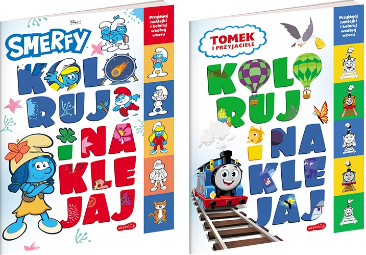 Seria prostych kolorowanek z prostokątnymi naklejkami, które mogą posłużyć jako kolorystyczna ściągawka dla małego artysty! Naklejkę przedstawiającą wybraną postać wystarczy przykleić na stronie z obrazkiem do pokolorowania, aby móc w każdej chwili sprawdzić, jakie kolory powinny mieć poszczególne elementy ilustracji. Kolorowanie według wzoru pozwala wyćwiczyć spostrzegawczość małego dziecka i jego zdolności manualne, a przy okazji daje ogromną satysfakcję – pokolorowana postać wygląda tak jak w ulubionej kreskówce!