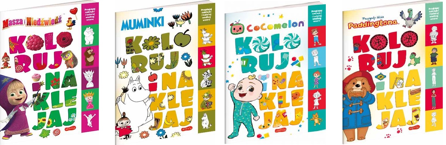Seria prostych kolorowanek z prostokątnymi naklejkami, które mogą posłużyć jako kolorystyczna ściągawka dla małego artysty! Naklejkę przedstawiającą wybraną postać wystarczy przykleić na stronie z obrazkiem do pokolorowania, aby móc w każdej chwili sprawdzić, jakie kolory powinny mieć poszczególne elementy ilustracji. Kolorowanie według wzoru pozwala wyćwiczyć spostrzegawczość małego dziecka i jego zdolności manualne, a przy okazji daje ogromną satysfakcję – pokolorowana postać wygląda tak jak w ulubionej kreskówce!