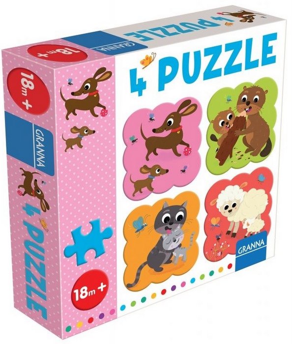 W skład zestawu wchodzą 4 puzzle 4 elementowe.