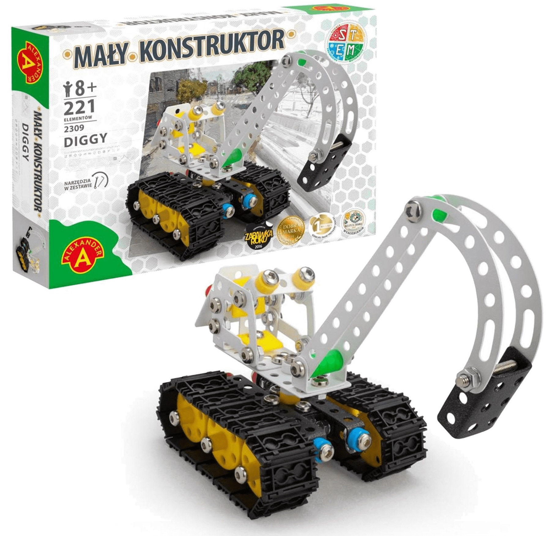 Mały Konstruktor to seria zabawek do samodzielnego montażu, rozwijająca zdolności manualne oraz wyobraźnię przestrzenną. Każdy model składa się z elementów metalowych o różnej wielkości i kształtach, a także jest wzbogacony kolorowymi elementami z tworzyw sztucznych.