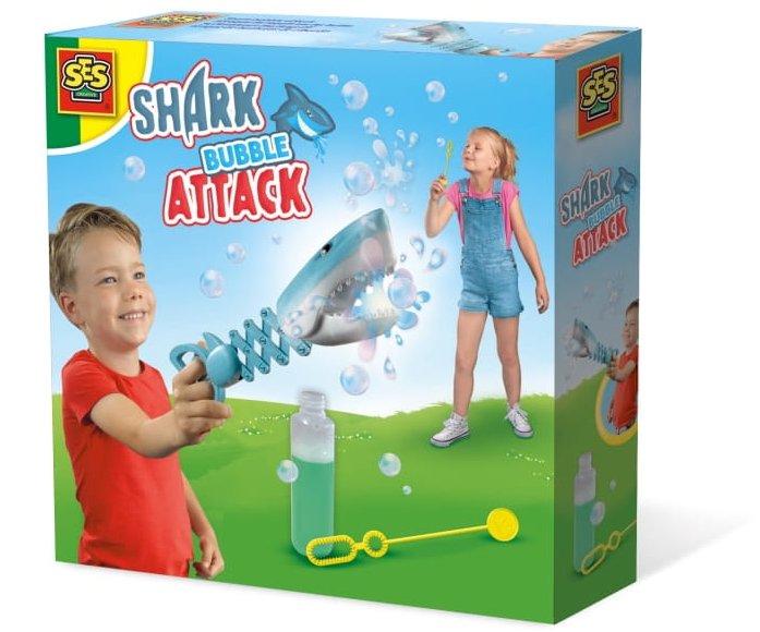 Zestaw umożliwiający robienie baniek mydlanych w sposób tradycyjny oraz za pomocą rekina.