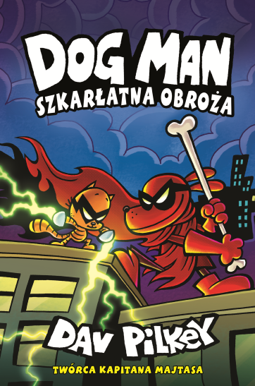 Dwunasty tom komiksu przygodowego o psim superbohaterze. Dog Man został zaatakowany przez skunksa! Po zanurzeniu w soku pomidorowym smród zniknął, ale szkarłatny kolor pozostał. Teraz wygnany superbohater musi walczyć o ocalenie mieszkańców, którzy go odrzucili! Kot Pet niechętnie wraca do przestępczego życia, aby pomóc Dog Manowi.
