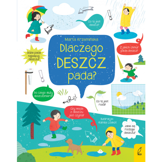 akie są rodzaje chmur? Skąd się bierze tęcza? Jakie są rodzaje deszczu? Czy deszcz pada wszędzie na świecie? Książka popularnonaukowa dla najmłodszych. Czytelnicy znajdą w niej odpowiedzi na (prawie) wszystkie pytanie dotyczące deszczu. A co najważniejsze wszystko napisane językiem zrozumiałym dla najmłodszych.