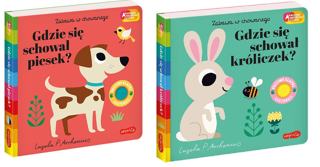 Kartonowe książeczki w serii „Zabawa w chowanego. Akademii mądrego dziecka” mają duże, filcowe i wytrzymałe klapki, które odporne są na ciągnięcia małych rączek i zapewnią super zabawę. Na każdej stronie zadajemy maluszkowi pytanie: gdzie się schował jednorożec, kurczaczek, samochód, piesek, króliczek czy kotek. Za każdym razem maluszek otwiera duża, filcową klapkę i znajduje postać. Na ostatniej stronie szukamy naszego czytelnika zadając mu pytanie: „A gdzie ty jesteś?” Pod ostatnią klapką znajdziemy lusterko: - „Tutaj jesteś”!