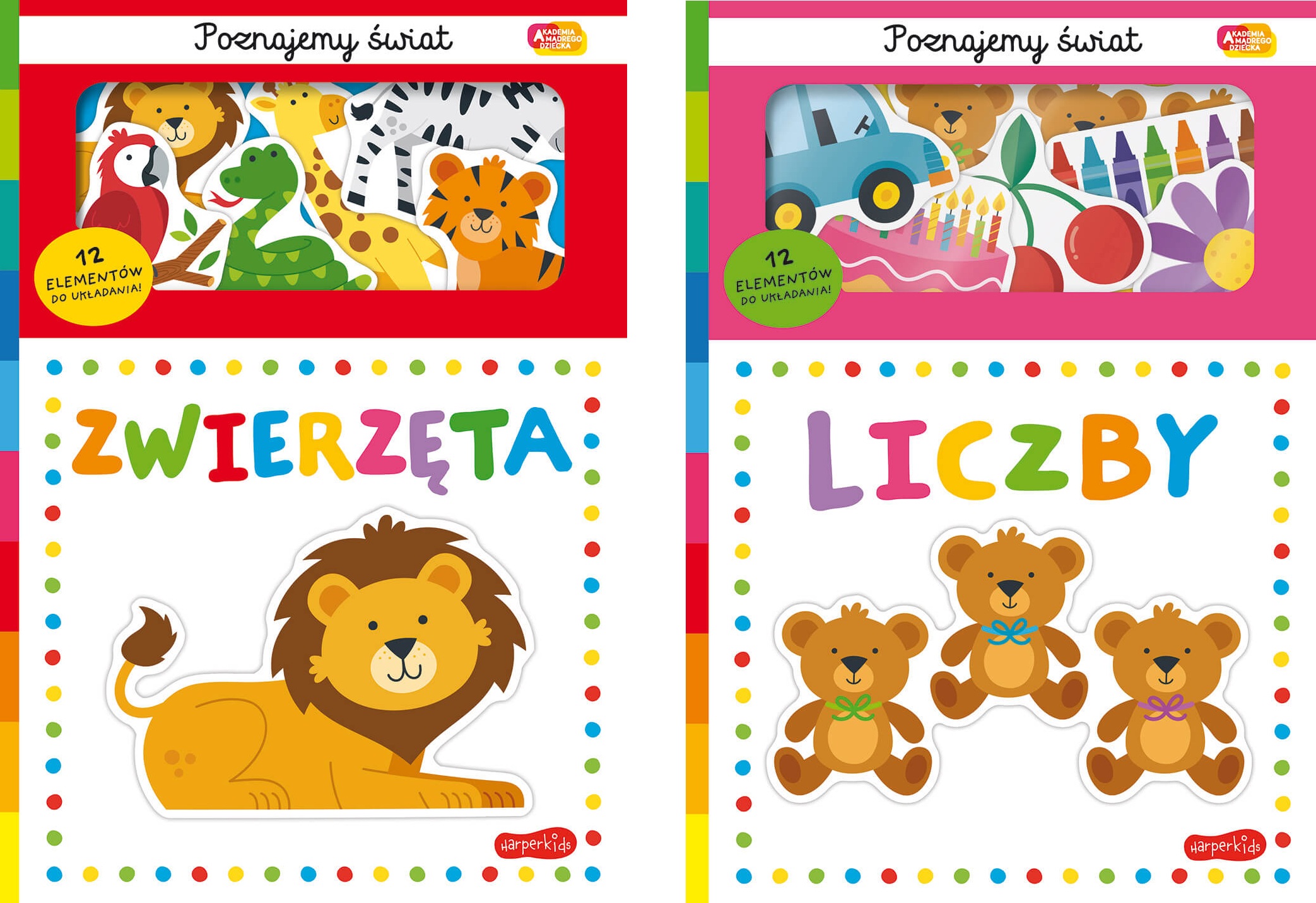 „Poznajemy świat” to seria książeczek znana i lubiana przez dzieci i rodziców. Ten zestaw to idealny prezent, w którym znajduje się kartonowa książeczka oraz 12 puzzli, które trzeba umiejscowić na odpowiedniej stronie. Seria pokazuje i uczy świata, dodatkowo ćwicząc małą motorykę i pomagając w skupieniu. To idealny zestaw dla maluchów. Zapraszamy do wspólnej zabawy i poznawania pierwszych słów.