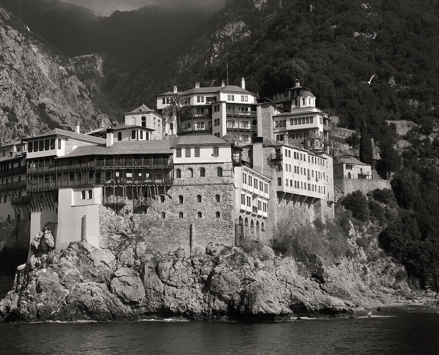 Na wschodnim cyplu Półwyspu Chaldyckiego znajduje się święta góra Athos będąca formalnie autonomiczną republiką w całości zarządzaną przez mnichów zamieszkujących licznie rozsiane tu prawosławne klasztory. Początki życia monastycznego sięgają na Athos zapewne końca VIII stulecia i do dziś blisko dwa tysiące mnichów zamieszkuje miejscowe klasztory, skity i pustelnie. Choć okolica nie stwarza tak trudnych barier topograficznych jak pionowe ściany Meteorów, to dostać się tu wcale nie jest łatwo, a dla niektórych w ogóle nie będzie to możliwe. Na terenie mniszej republiki świeccy prawosławni przebywać mogą zaledwie trzy dni (z opcją przedłużenia), a wierni wyznań oraz religii innych niż prawosławie zaledwie dobę i to w ograniczonej liczbie osób. Wjechać na teren Athos można tylko od strony morza i tylko po otrzymaniu wizy pobytowej. Uwaga: kobietom wstęp wzbroniony. Zakaz ten obowiązuje od 1060 roku i podobno nawet zwierzęta hodowlane są tu wyłącznie płci męskiej!