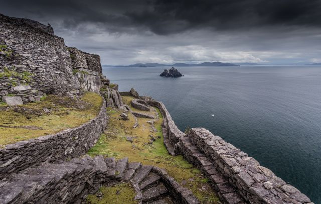 Fani „Gwiezdnych Wojen” doskonale pamiętają zapierającą dech w piersiach scenę z najnowszej części kosmicznej epopei. Zjawiskowa górzysta wysepka rzucona w bezkres oceanu, targana przez wichry i smagana przez ryczące fale. Tutaj, pośród ruin starożytnej świątyni rycerzy Jedi, dochodzi do niezwykłego spotkania… Jeśli myśleliście, że tak oniryczna sceneria mogła powstać jedynie przy pomocy komputerowo generowanych efektów specjalnych, byliście w błędzie. To miejsce istnieje naprawdę i nazywa się Skelling Michael. Tę właśnie niedostępną wyspę u południowozachodnich wybrzeży Irlandii za dom obrali w VII wieku iryjscy mnisi, którzy mieszkali tu przez ok. 800 lat. Do dziś zachowały się ślady ich obecności w postaci kościoła, cel mniszych, cmentarza, czy stromych kamiennych schodów. Dostęp na Skelling jest ograniczony ze względu na cenne zabytki, niebezpieczną przeprawę morską oraz w celu ochronny siedlisk ptaków zamieszkujących wyspę. W tym samym czasie może tu przebywać maksymalnie 180 osób, a rocznie Skelling odwiedza średnio 11 tyś. turystów. Ze względu na warunki żeglugi wycieczki przybijają do brzegów wyspy jedynie w sezonie letnim. Ekipa filmująca „Gwiezdne Wojny” otrzymała zezwolenie na realizację scen i powróciła tu również przy okazji kręcenia VIII części sagi.
