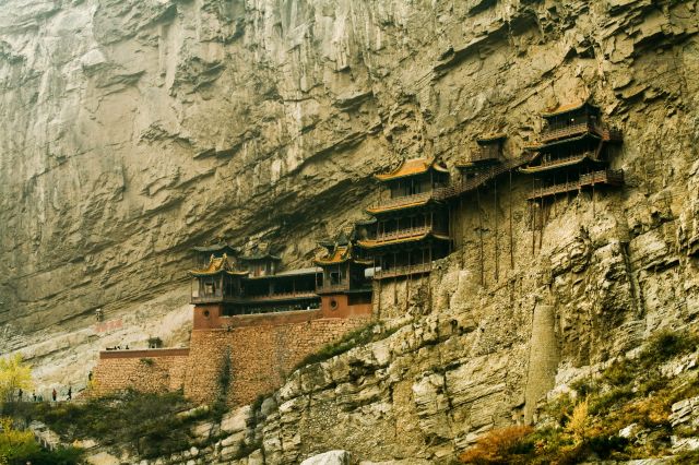 Liczący sobie czternaście wieków kompleks świątyń w prowincji Shanxi w Chinach został wykuty w pionowej zboczu jednej ze świętych gór taoizmu. Blisko 40 obiektów świątynnych wyposażono w wystające poza obręb skał drewniane fasady połączone linami, kładkami i mostkami. To wycieczka tylko dla ludzi o mocnych nerwach. Duchowe bogactwo tego miejsca z pewnością jednak zrekompensuje stres odwiedzającym cierpiącym na lęk wysokości. Szczególnie warto zwiedzić Pawilon Trzech Religii, gdzie ustawiono obok siebie posągi Konfucjusza, Buddy i Laozi – czyli założycieli trzech wielkich systemów religijnych Azji: konfucjanizmu, buddyzmu oraz taoizmu.