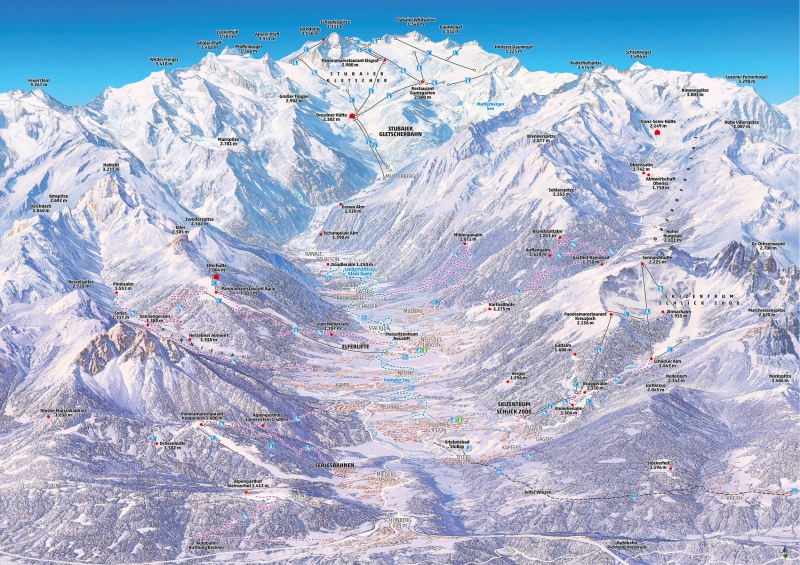 Oprócz dziesięciokilometrowego zjazdu do doliny „Wilde Grub'n”, licznych niebieskich, czerwonych i czarnych nartostrad oraz różnych tras narciarskich, czeka tu również jeden z najlepszych terenów do freeride’u w Austrii. Powder Department na lodowcu Stubai obejmuje 13 tras w otwartym, niezabezpieczonym terenie z własną mapą, punktami kontrolnymi, filmami z tras, kontrolami nadajników lawinowych i znakami ostrzegającymi przed lawinami.