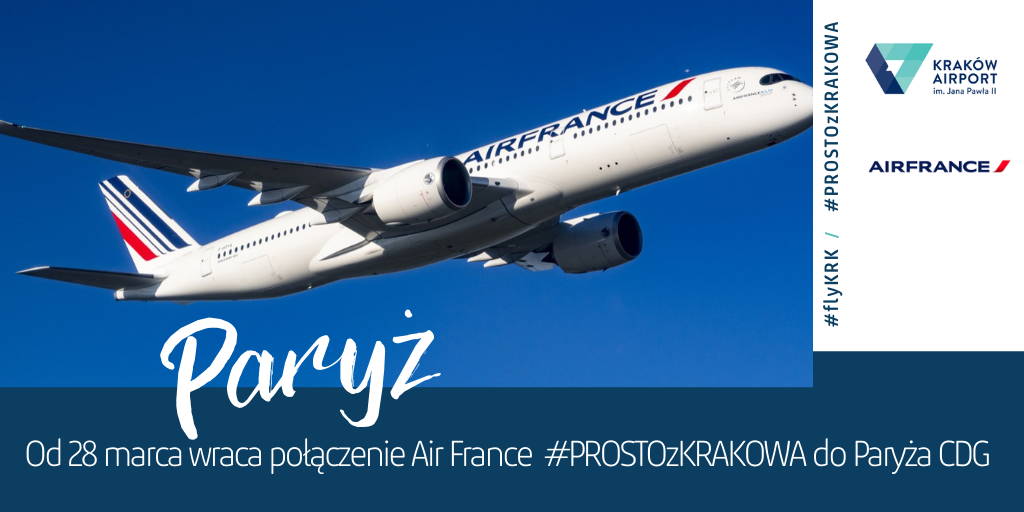 Od 28 marca z początkiem sezonu Lato 2022 powróci linia lotnicza Air France z połączeniem z Krakowa do Paryża - Charles de Gaulle.