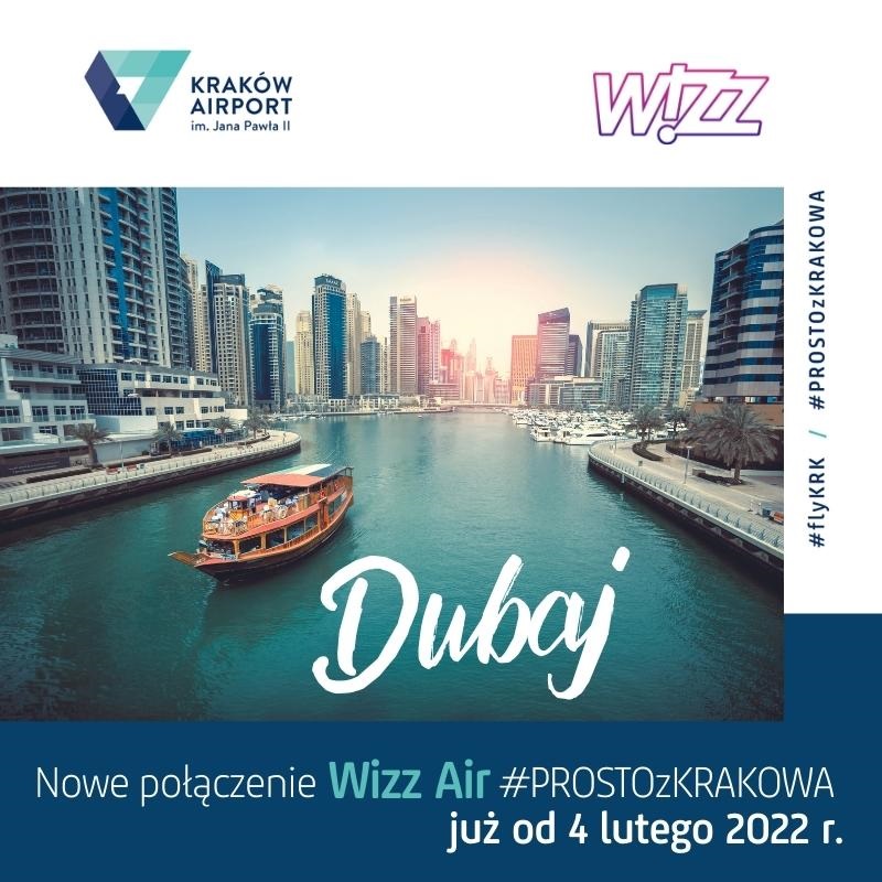 Od 4 lutego 2022 roku Wizz Air, jedna z najszybciej rozwijających się linii lotniczych w Europie, otwiera nowe połączenie z Krakowa do Dubaju.