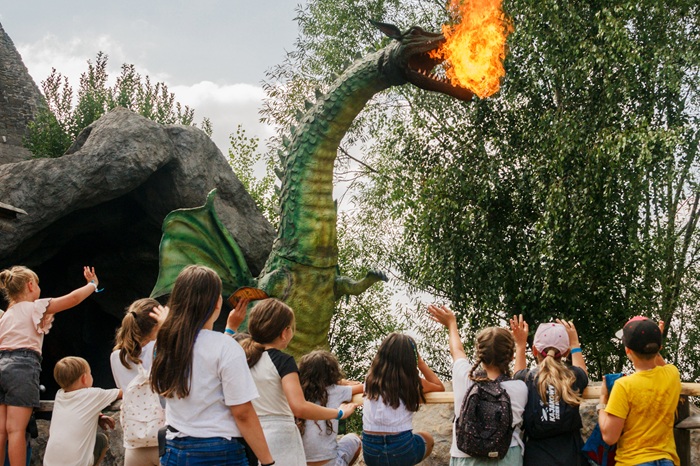 Nieco dalej rozciągają się Smocze Ziemie – interaktywna strefa z ruchomymi smokami, Smoczymi Tratwami, Małpim Gajem i Mokradełkiem. To miejsce pełne ruchu, śmiechu i dziecięcej radości.